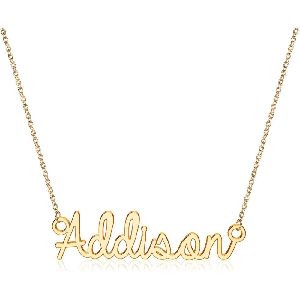 Turandoss Custom Name Necklace Personalized, 14K Gold Plated Name Pendant Necklace Dainty Name Necklace Personalized Jewelry Gifts for Women(Addison)