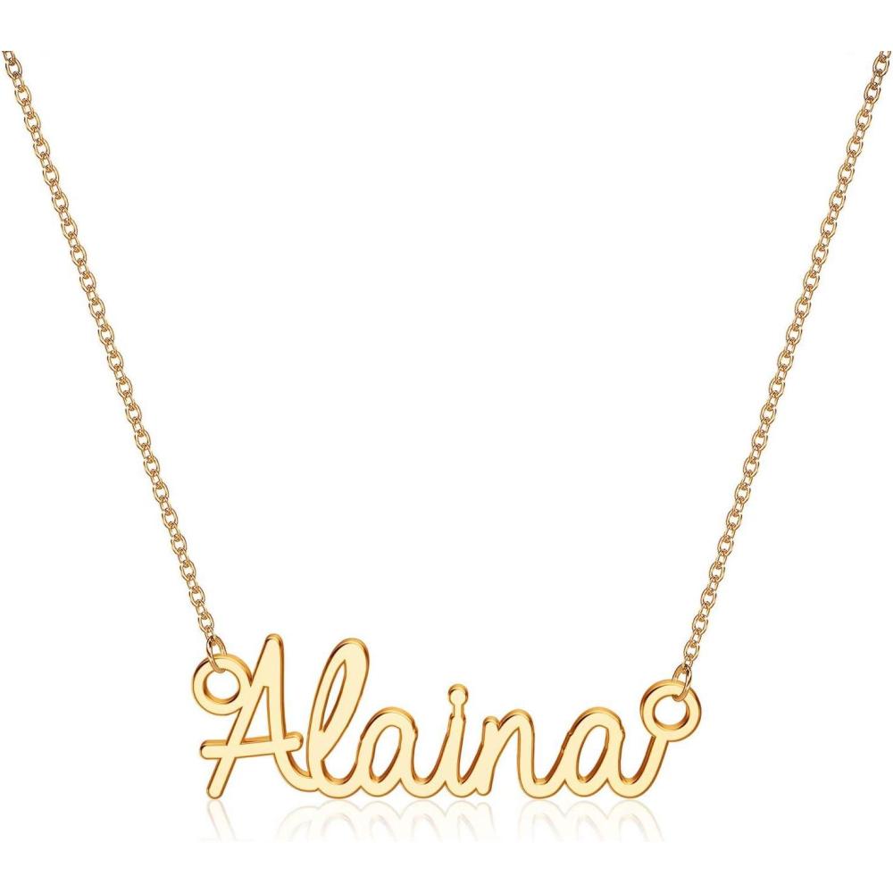 Turandoss Custom Name Necklace Personalized, 14K Gold Plated Name Pendant Necklace Dainty Name Necklace Personalized Jewelry Gifts for Women(Alaina)