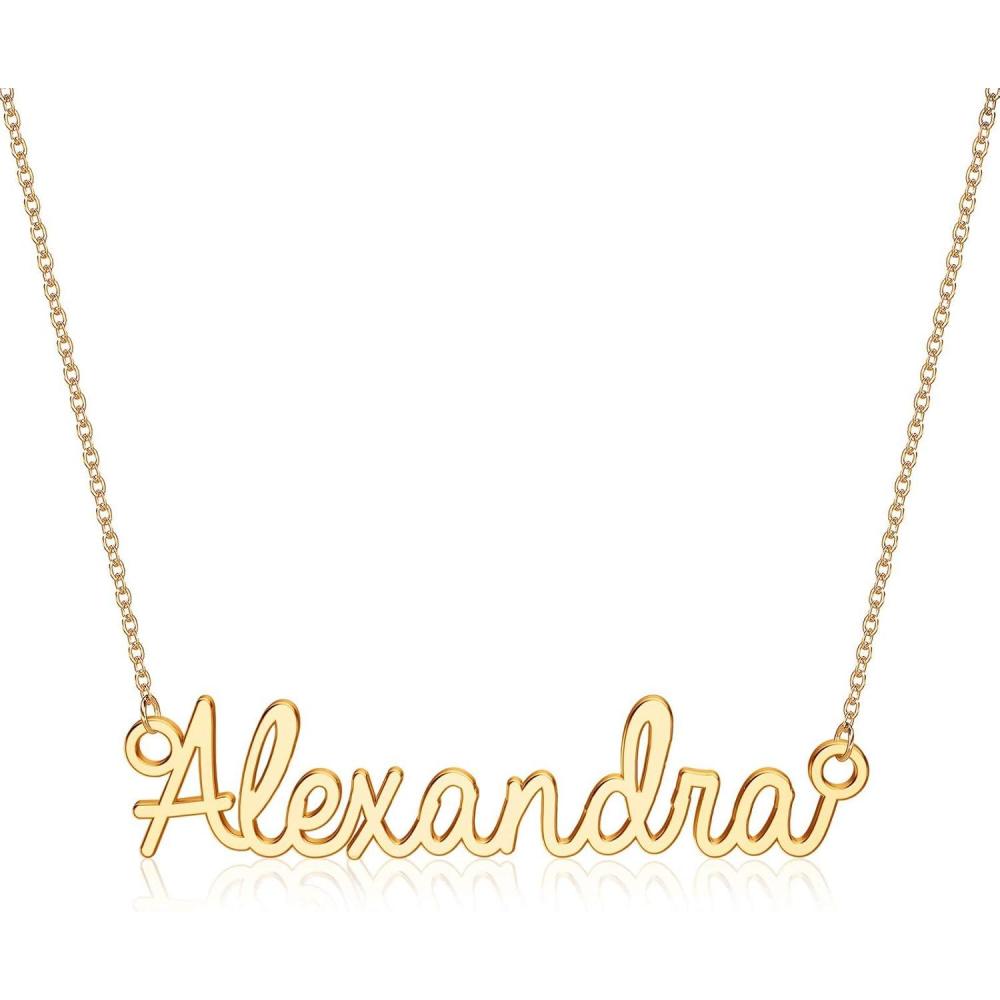 Turandoss Custom Name Necklace Personalized, 14K Gold Plated Name Pendant Necklace Dainty Name Necklace Personalized Jewelry Gifts for Women(Alexandra)