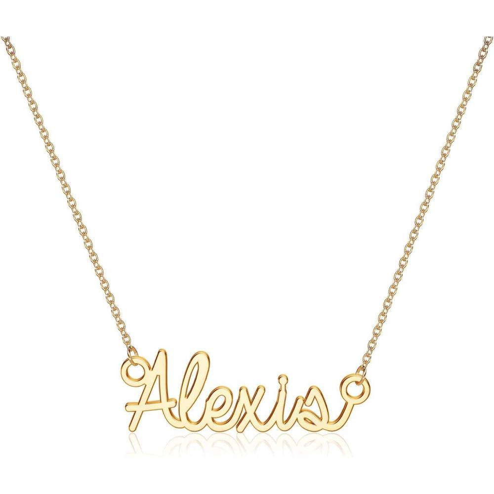 Turandoss Custom Name Necklace Personalized, 14K Gold Plated Name Pendant Necklace Dainty Name Necklace Personalized Jewelry Gifts for Women(Alexis)