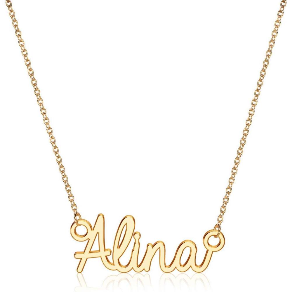 Turandoss Custom Name Necklace Personalized, 14K Gold Plated Name Pendant Necklace Dainty Name Necklace Personalized Jewelry Gifts for Women(Alina)