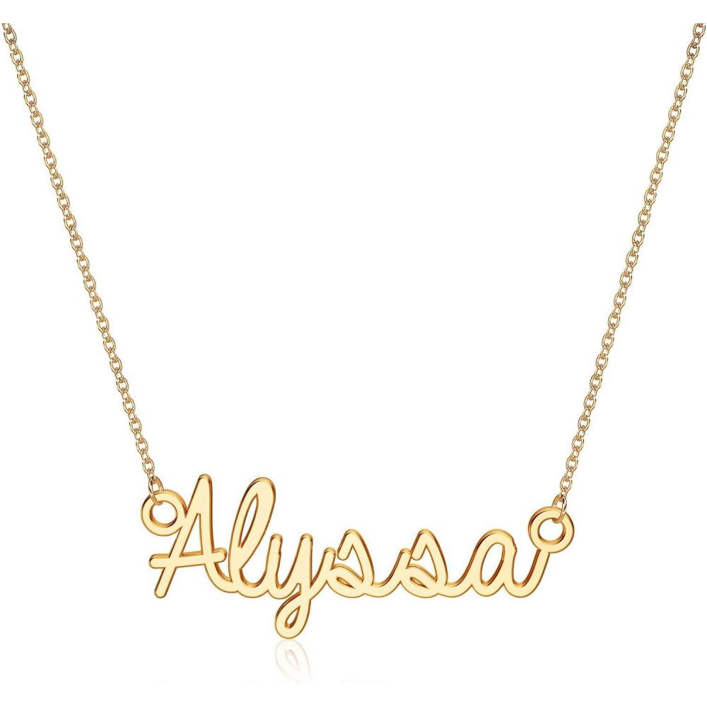 Turandoss Custom Name Necklace Personalized, 14K Gold Plated Name Pendant Necklace Dainty Name Necklace Personalized Jewelry Gifts for Women(Alyssa)