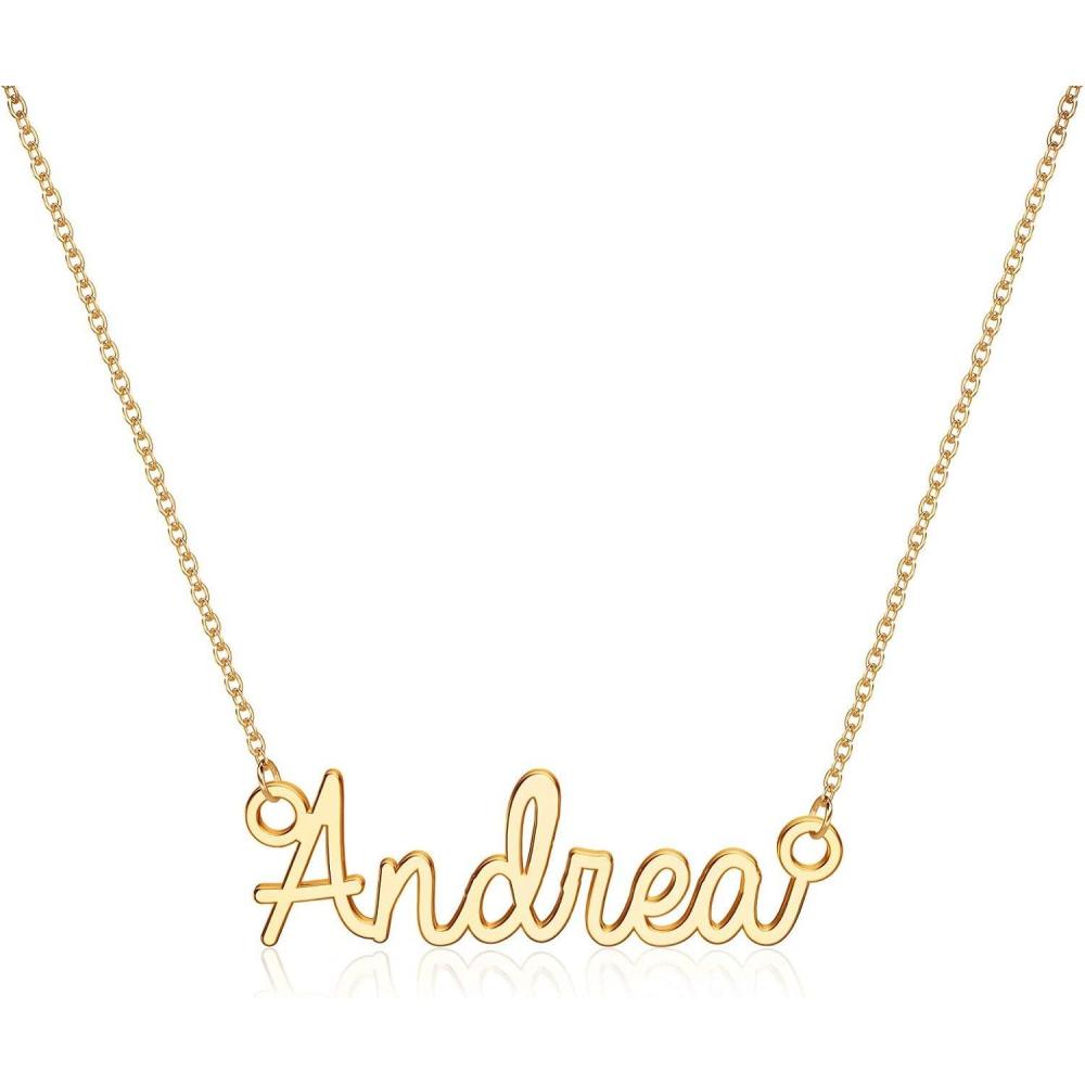 Turandoss Custom Name Necklace Personalized, 14K Gold Plated Name Pendant Necklace Dainty Name Necklace Personalized Jewelry Gifts for Women(Andrea)