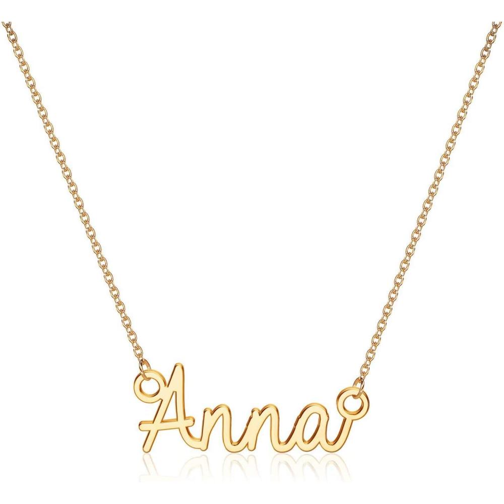 Turandoss Custom Name Necklace Personalized, 14K Gold Plated Name Pendant Necklace Dainty Name Necklace Personalized Jewelry Gifts for Women(Anna)