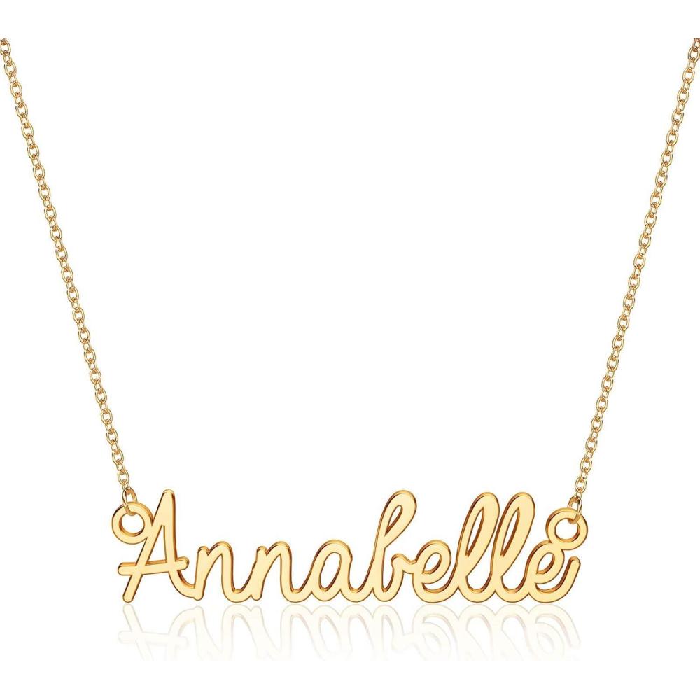 Turandoss Custom Name Necklace Personalized, 14K Gold Plated Name Pendant Necklace Dainty Name Necklace Personalized Jewelry Gifts for Women(Annabelle)