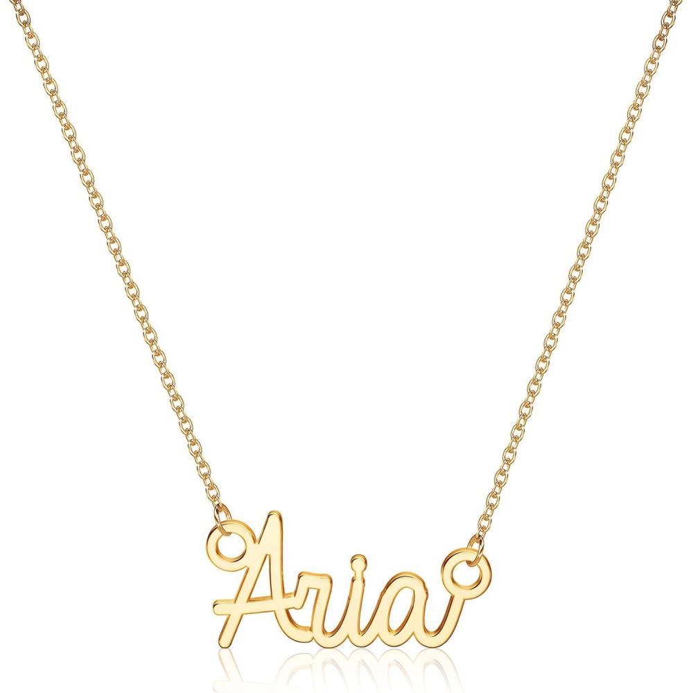 Turandoss Custom Name Necklace Personalized, 14K Gold Plated Name Pendant Necklace Dainty Name Necklace Personalized Jewelry Gifts for Women(Aria-N)