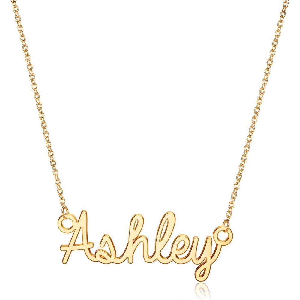 Turandoss Custom Name Necklace Personalized, 14K Gold Plated Name Pendant Necklace Dainty Name Necklace Personalized Jewelry Gifts for Women(Ashley)